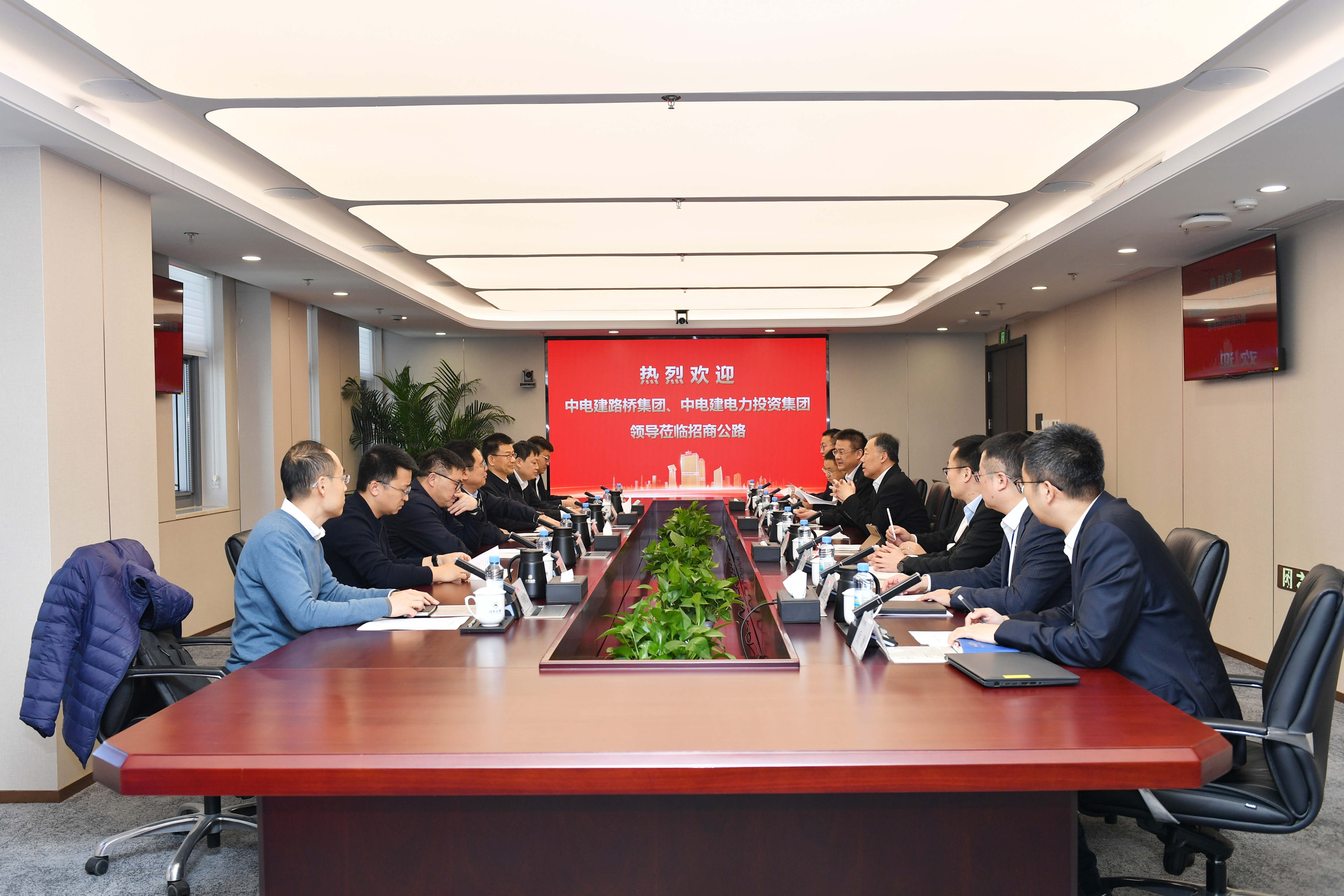 中电建路桥集团董事会秘书、办公室主任毕华军,资产运营事业部负责人;中电建电投集团总经理助理杨东曜,北京分公司负责人;招商公路财务总监杨少军、董事会秘书孟杰,战略发展部、投资开发部、华祺投资相关负责人一同参加会见。